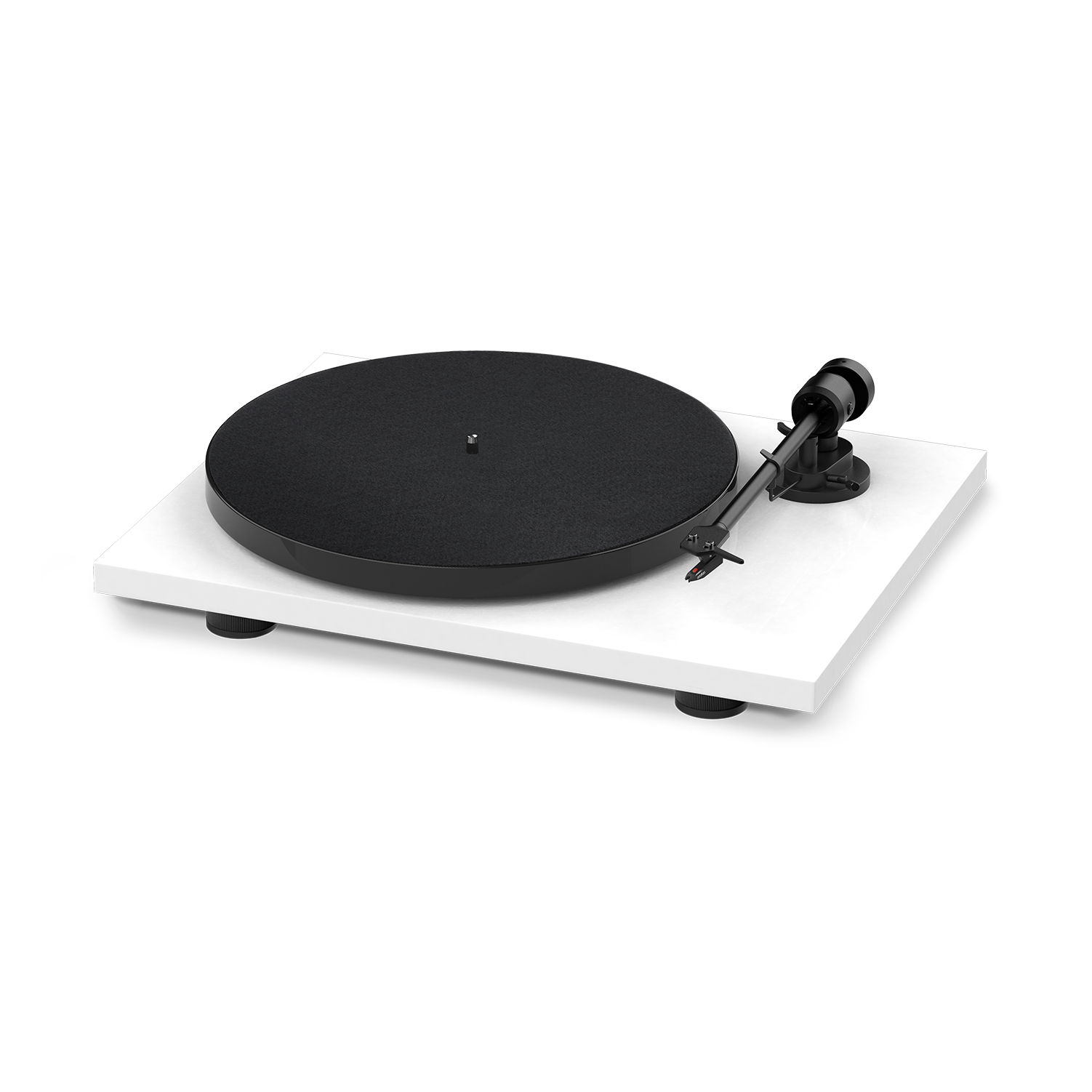 The stylish CNC-machined composite fibre plinth, available in high gloss black, high gloss white or walnut finish, is carefully manufactured to ensure there are no hollow spaces inside. The lightweight and low friction 8,6“ aluminium tonearm is optimized for the high quality Ortofon OM5e cartridge and will bring out its maximum potential. The new ABS Polymer main platter is strengthened with purpose-designed ridges in order to create an ideal, anti- resonant platform for your vinyl. To protect your E1 from dust, you will also find an elegant acrylic dustcover with adjustable hinges in the box. Boasting premium materials, stylish aesthetics and a rich, lively sound, the extensive development process has ensured that there has been no compromise in the sound performance despite such an affordable price.